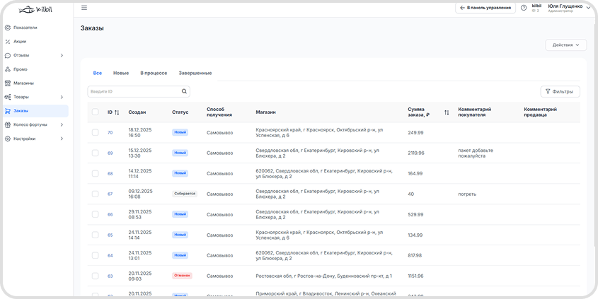 Платформа управления программами лояльности kilbil. ООО "Агентство сопровождения" 2025. Все права защищены Патент №2021611539